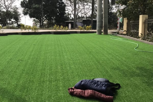 Cỏ nhân tạo 2 cm giá rẻ, đế hơi mỏng, mặt cỏ thưa